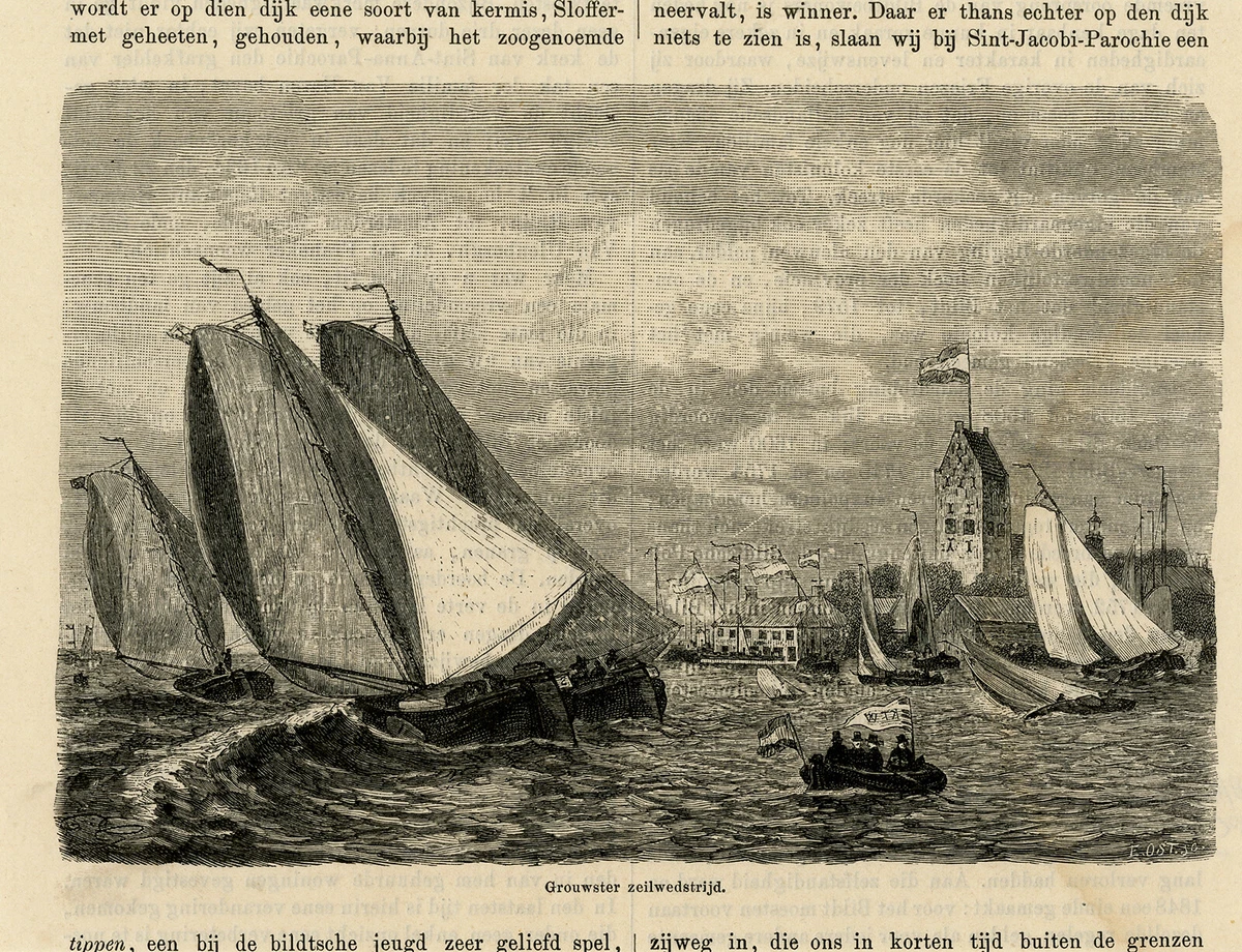 Antique Print Topography A sailing contest near Grouw in Friesland